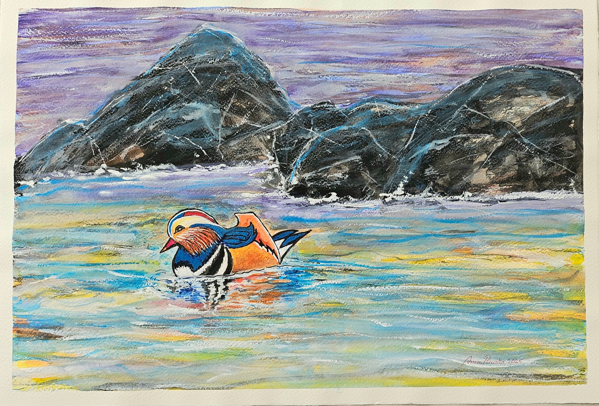 Herra Pippo, mandariinisorsa, 2025, akvarelli